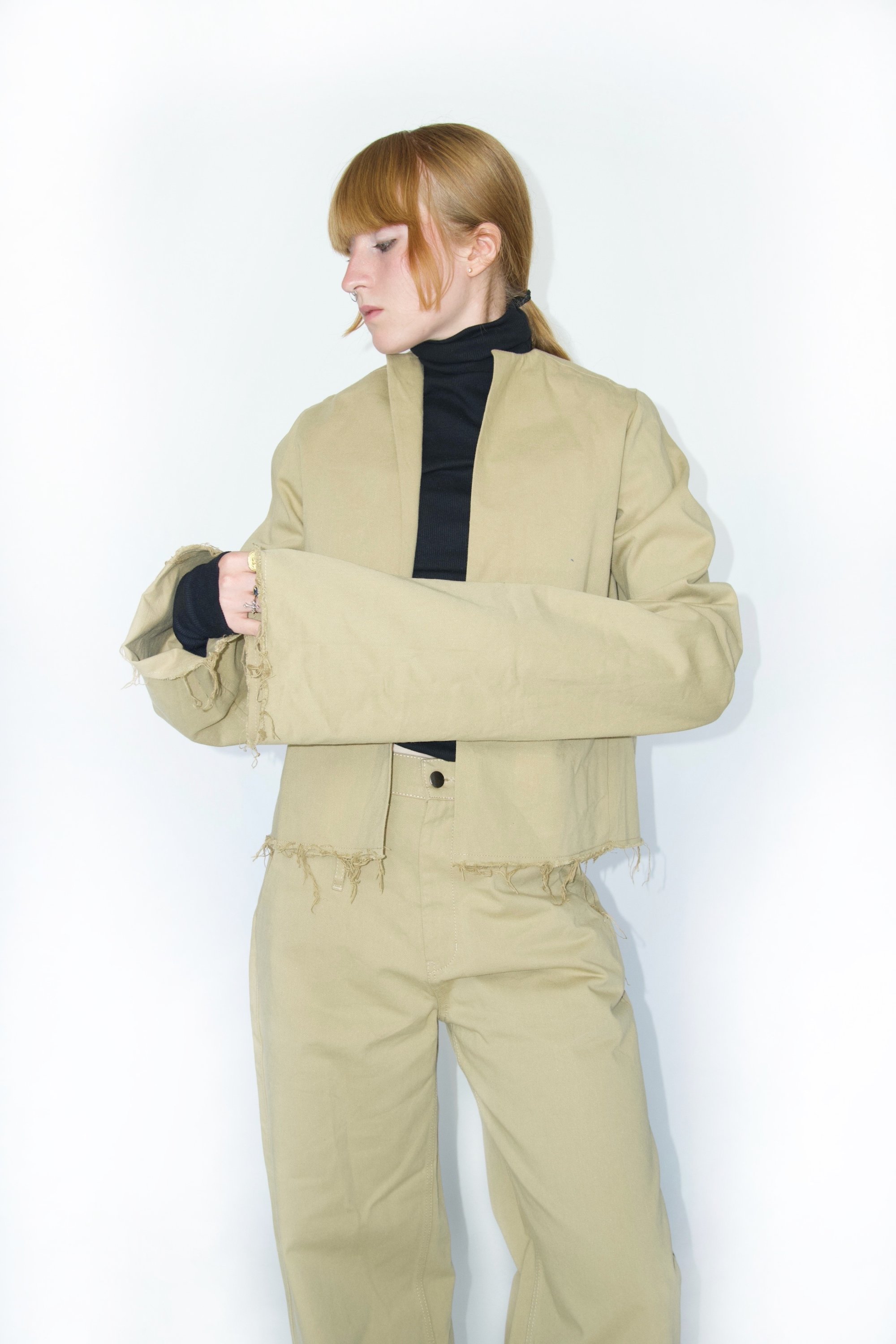 This shorter blazer features elongated sleeves, allowing it to be worn in several ways. The long option adds the elegance needed for special occasions. Rolled-up sleeves create a striking detail and an interesting silhouette for everyday wear. The slightly flared cut gives this piece a sophisticated yet relaxed look, and together with the front snap button closure, it creates a minimalist design you'll fall in love with.