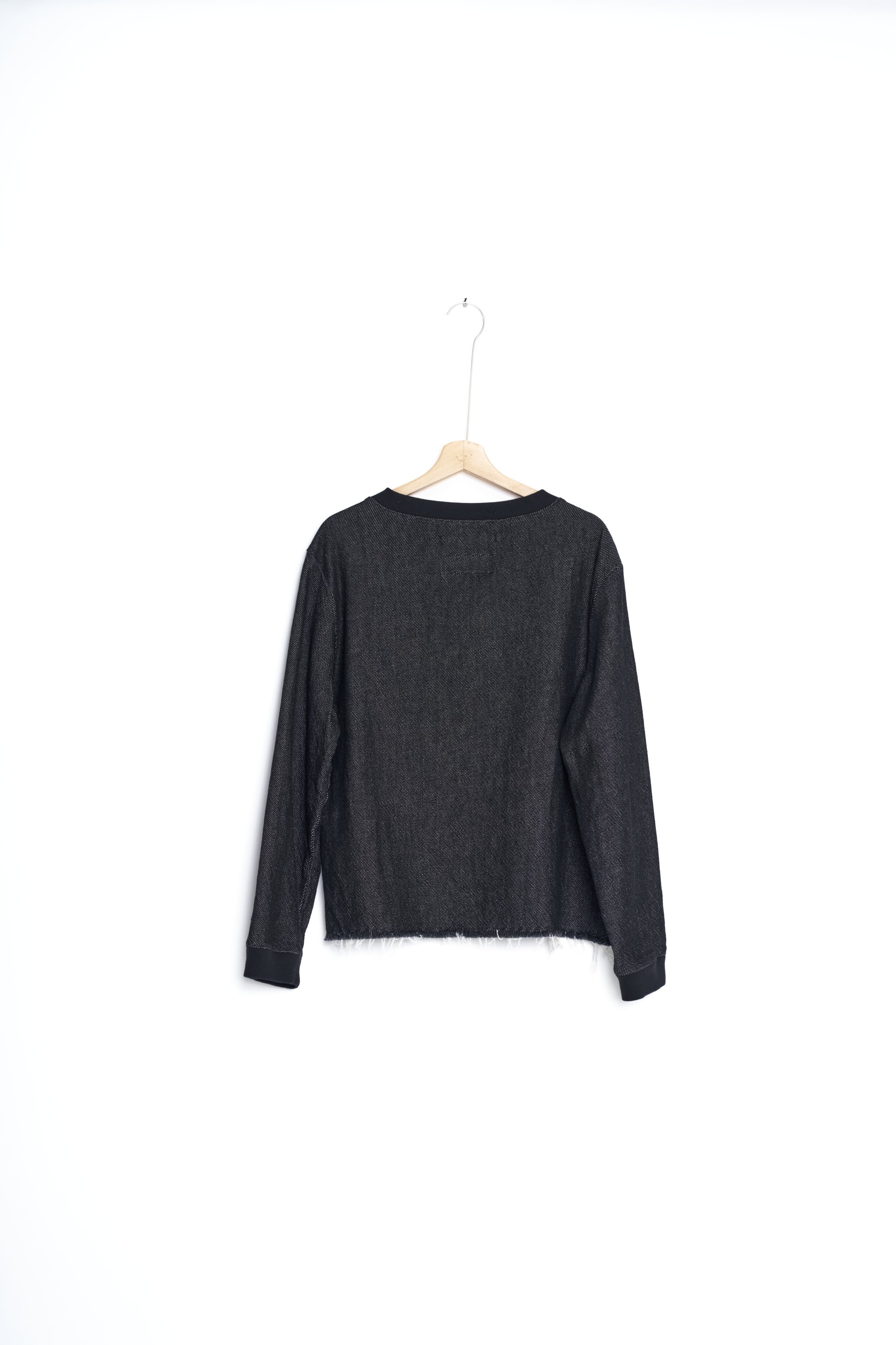 The Block sweatshirt combines the striking contrast of Japanese denim with ribbed knit fabric.