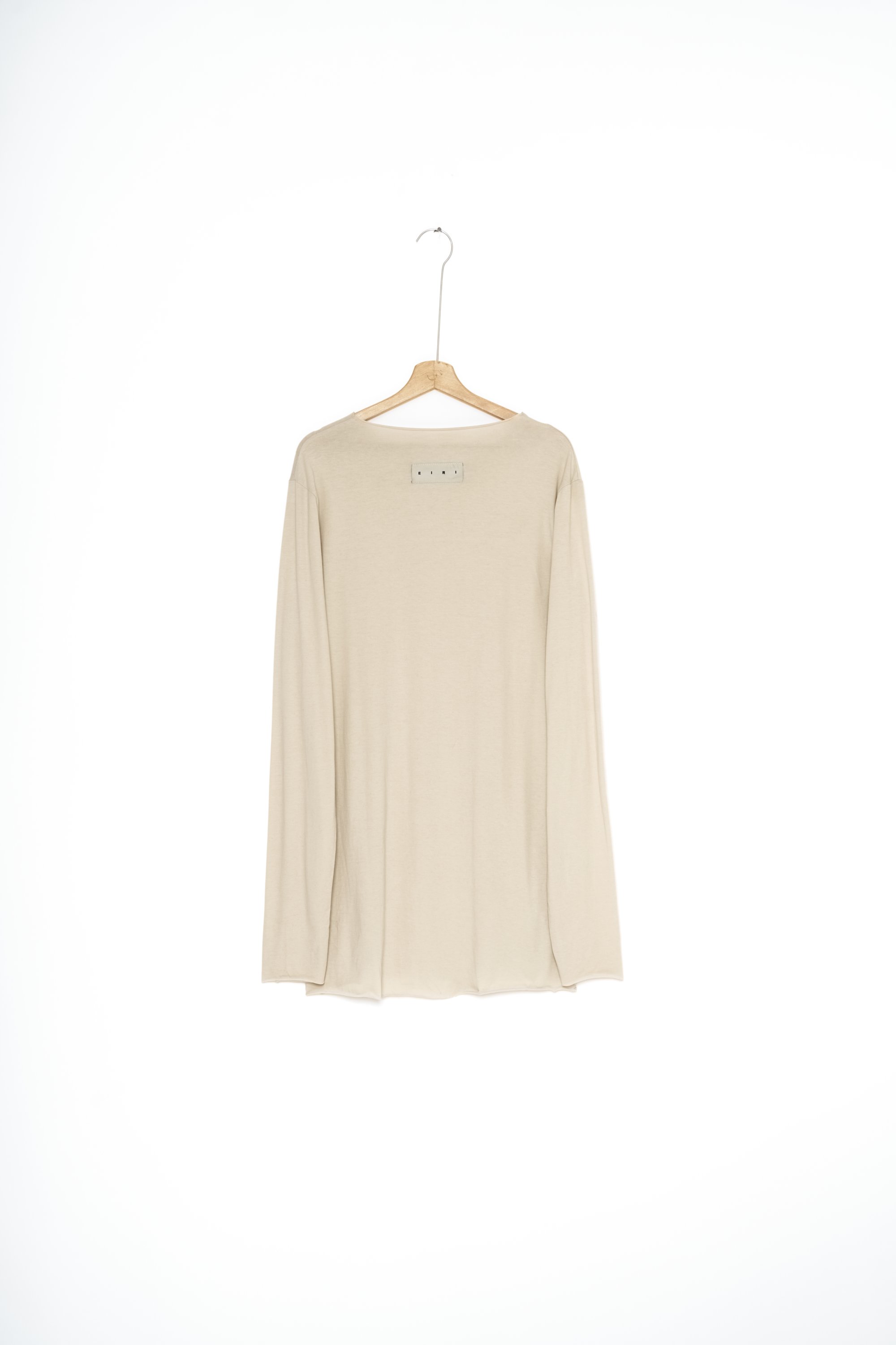 The Men’s Top Segment 02 features a minimalist design with a slim, tailored silhouette, free of any unnecessary distractions. Crafted from premium Japanese cotton knit, it is soft to the touch and exceptionally comfortable to wear. The long, narrow sleeves and clean lines of the cut create a sleek, elegant silhouette that naturally enhances the shape of the body. Thoughtfully minimalist, the design avoids any excessive detailing or embellishments—focusing purely on form and the quality of the material. The edges are left raw for a relaxed, contemporary finish.