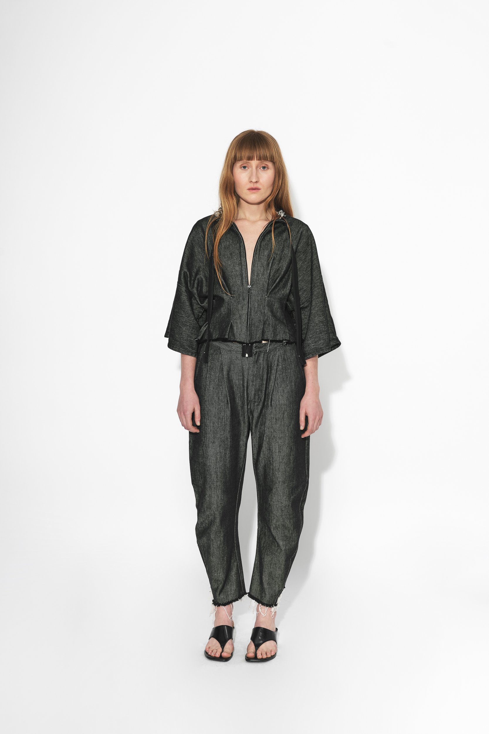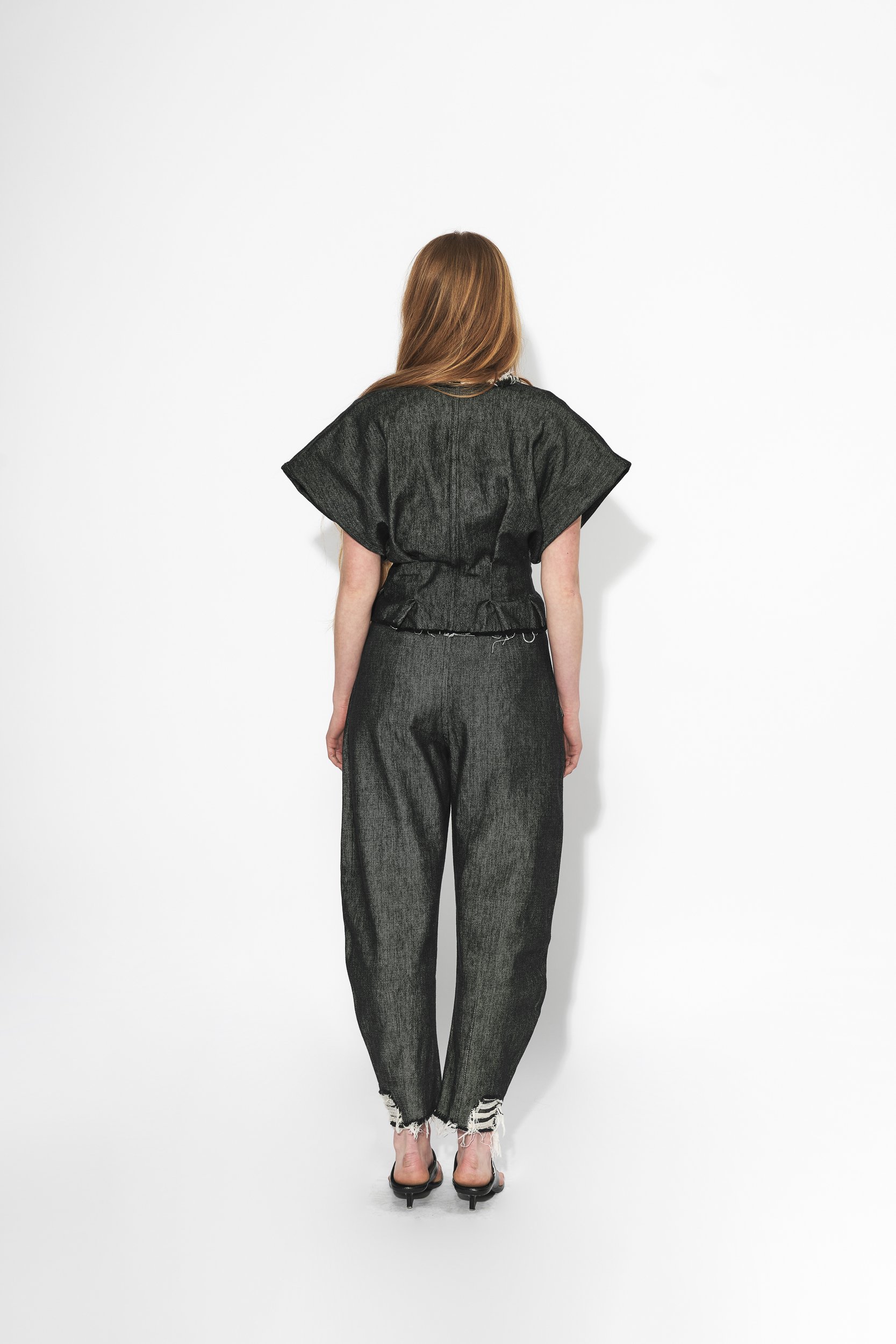 Kalhoty se vyznačují zajímavou oblou siluetou, která vzniká přetočením švů. Jako detail mají malé sklady na předním dílu a disponují praktickými kapsami.