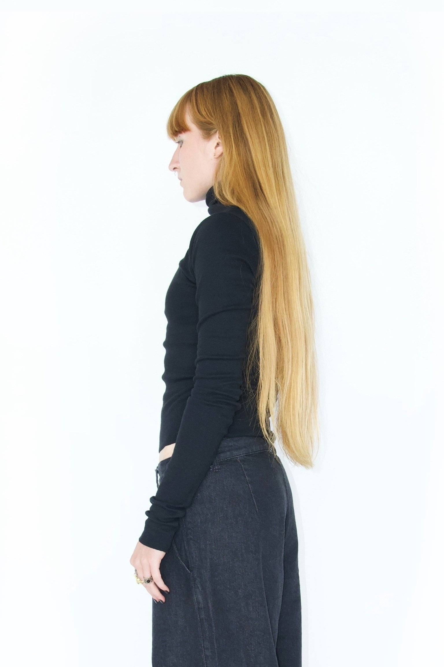 Příjemný top z jemně žebrované pleteniny s opravdu dlouhými rukávy a prodlouženým rolákem. Jedná se o zkrácenou variantu roláku Nahoře prodloužený. Délka od průramku dolů je 34 cm. Je ideální ke kombinování s EIRI denimovými kalhotami. Okraje jsou ponechány volně střižené. Tento kousek lze snadno kombinovat s různými styly outfitů a stane se tak klíčovým prvkem vašeho šatníku buďto jako designový kousek, nebo třeba i jako spodní vrstva v mrazech, kdy žádné rukávy nejsou dostatečně dlouhé!