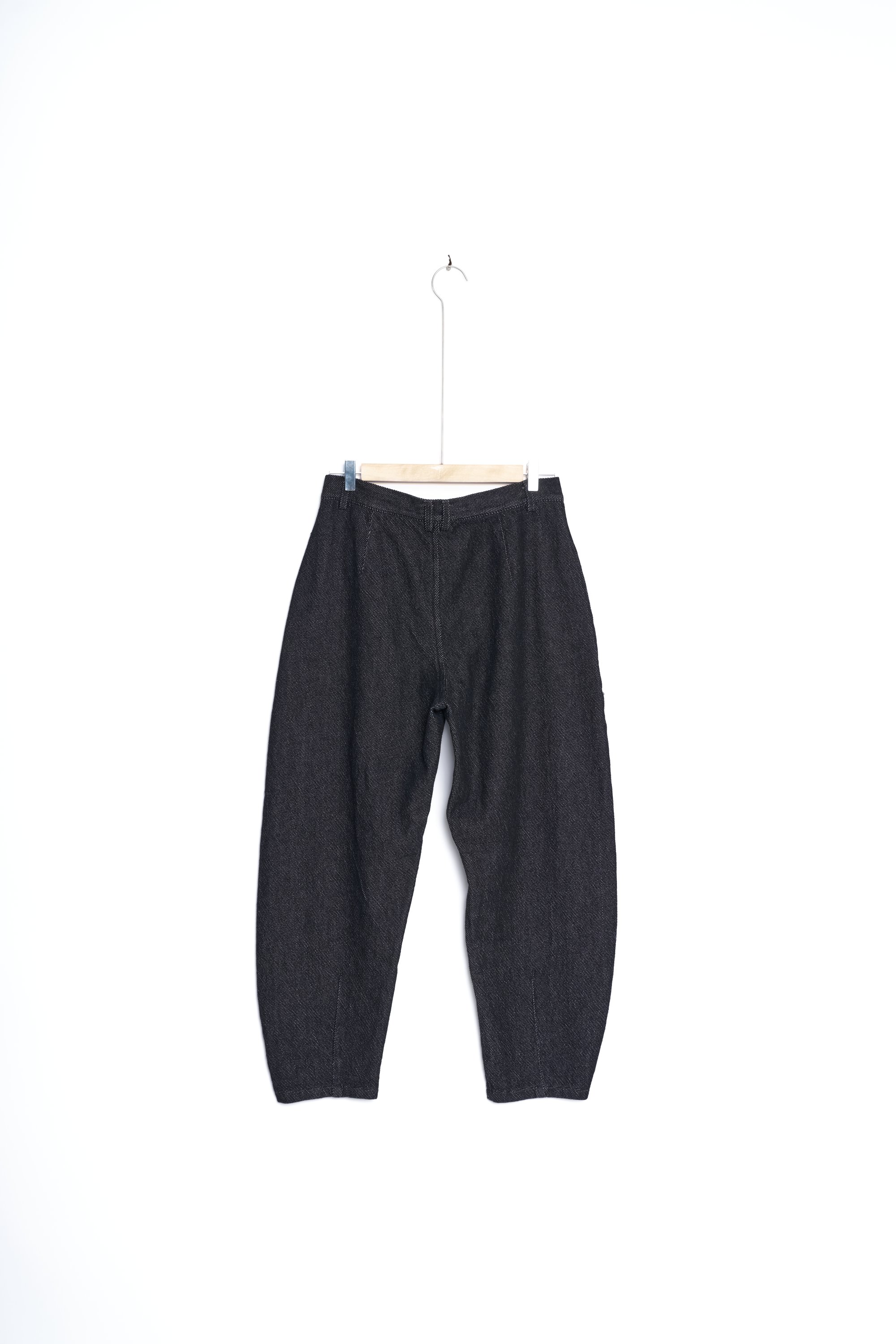 Materiály z Japonska jsou známé svou kvalitou a precizností zpracování. Tato konkrétní tkanina se vyznačuje volnou vazbou, která díky praní získává jedinečnou nadýchanou strukturu a měkkost. Jedná se o velmi netradiční formu denimu, který byl vyroben a obarven v provincii Hirošima.