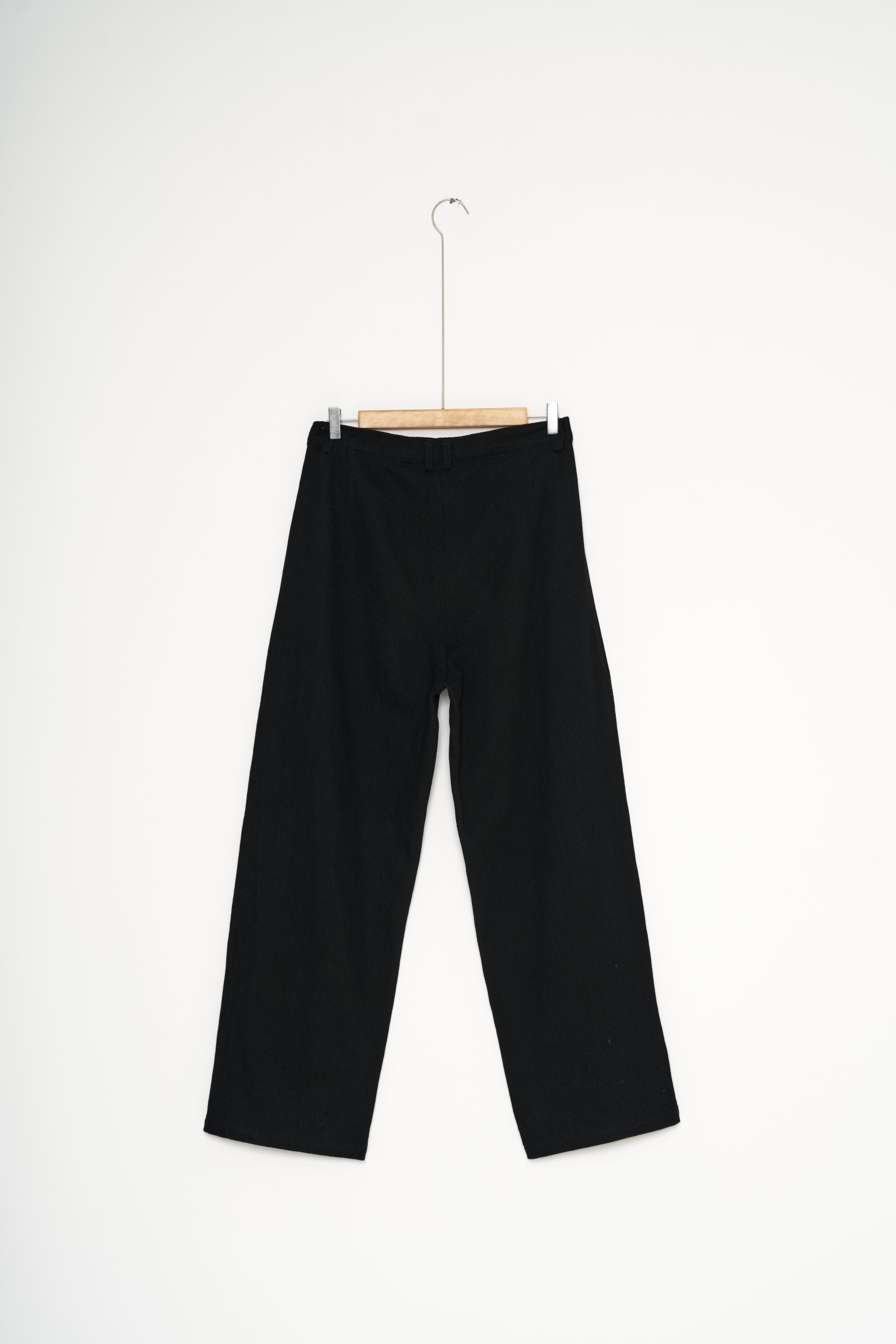 Kalhoty v řadě Dole bereme jako tvarové artefakty, které transformují siluetu a utvářejí výraz nositele.